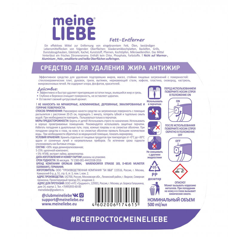 Ч.с MEINE LIEBE для удаления жира антижир 500мл
