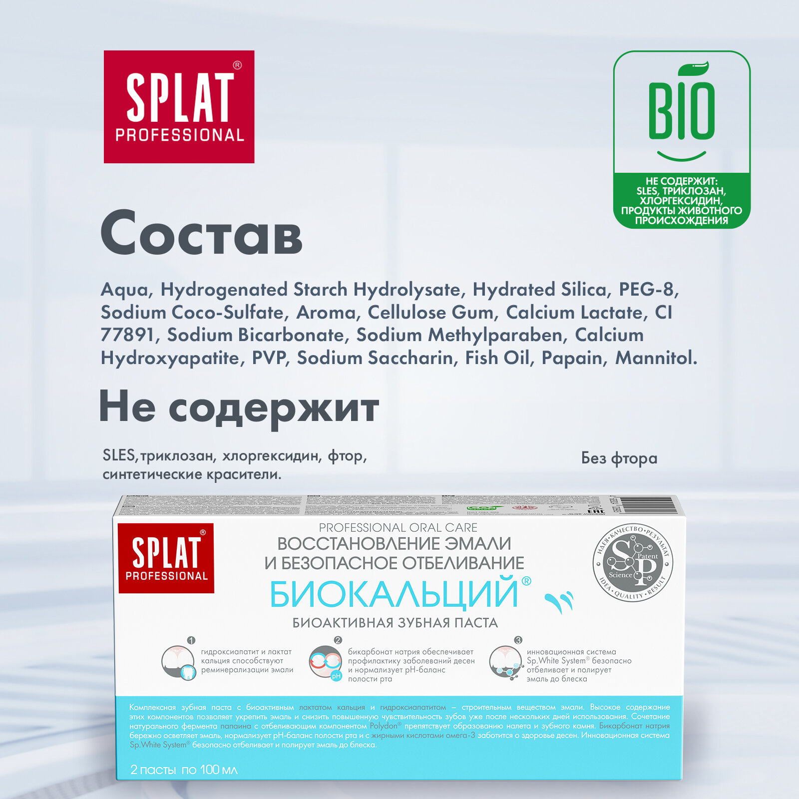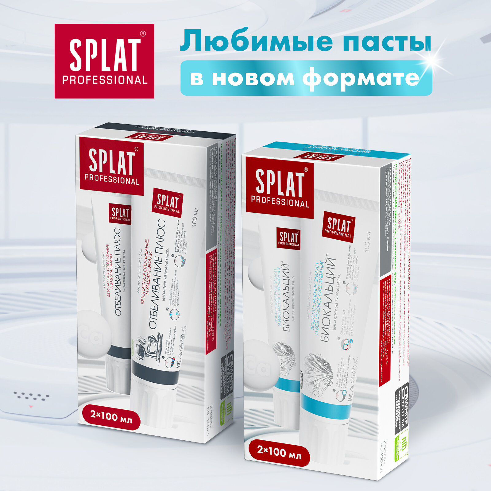 Зубная паста SPLAT Professional Биокальций для восстановления эмали 100 мл, набор 1+1