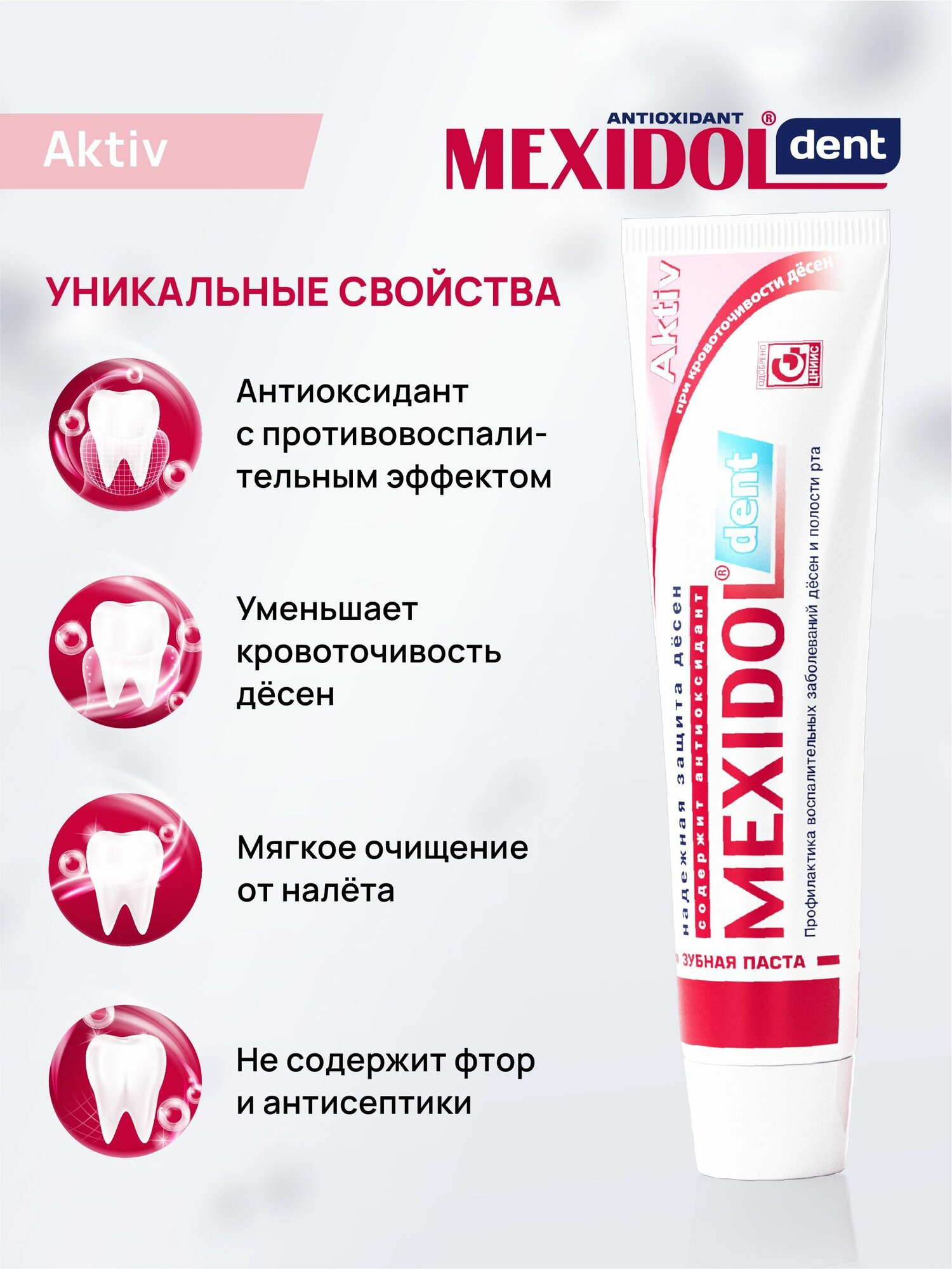 Купить Зубная паста MEXIDOL Dent Aktiv 65г (Мексидол дент Актив) с противовоспалительным эффектом для ежедневной гигиены и комплексного ухода за полостью рта