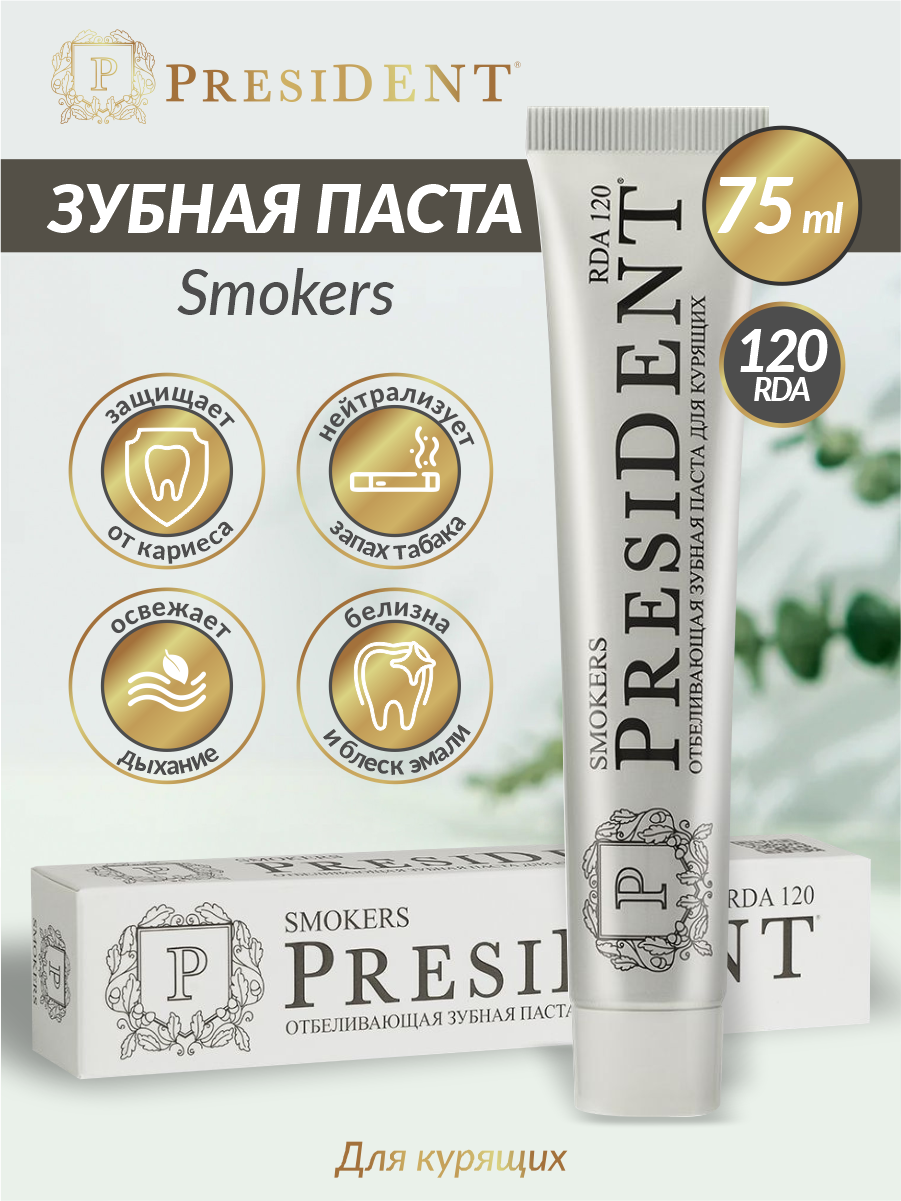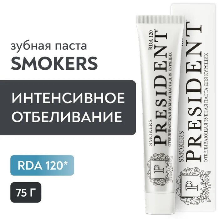 Зубная паста President Smokers, 120 RDA, 75 мл PRESIDENT 7069287 .