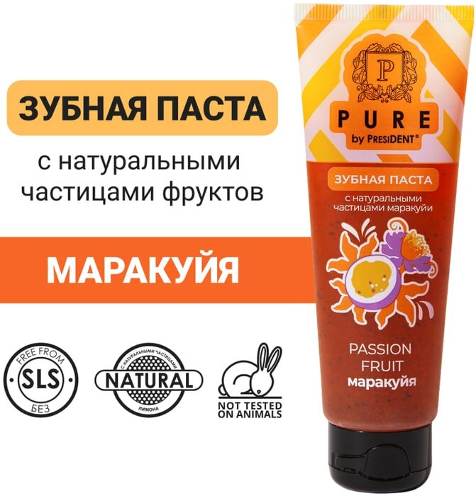 PRESIDENT Зубная паста Pure by President маракуйя, 100 г