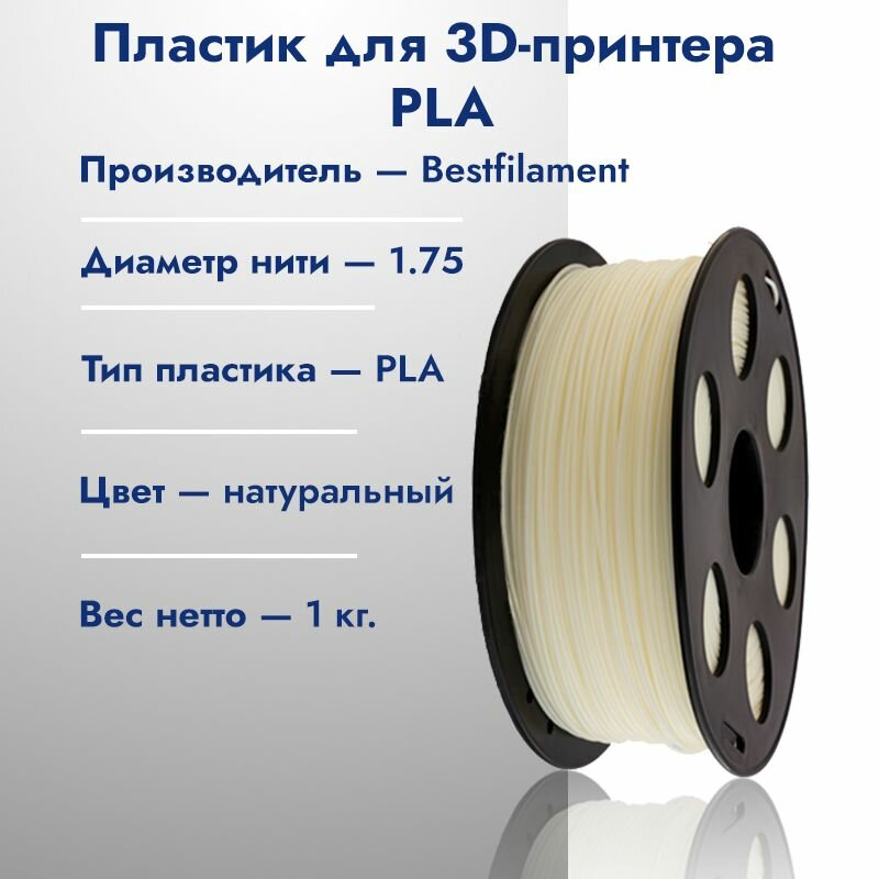 PLA пластик Bestfilament 1.75 мм для 3D-принтеров, 1 кг, натуральный