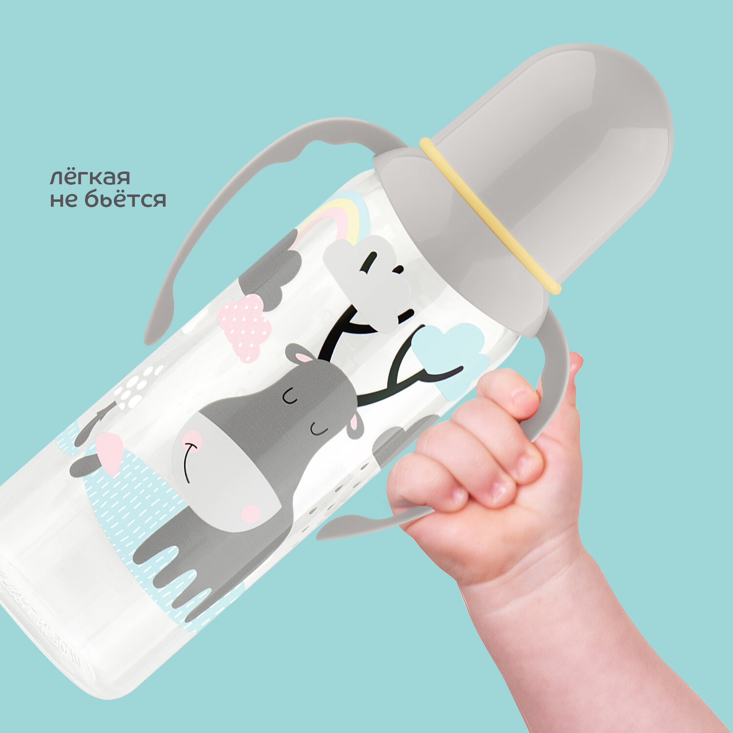 Курносики Бутылочка полипропиленовая с ручками и двумя силиконовыми сосками, 250 мл, с 6 месяцев