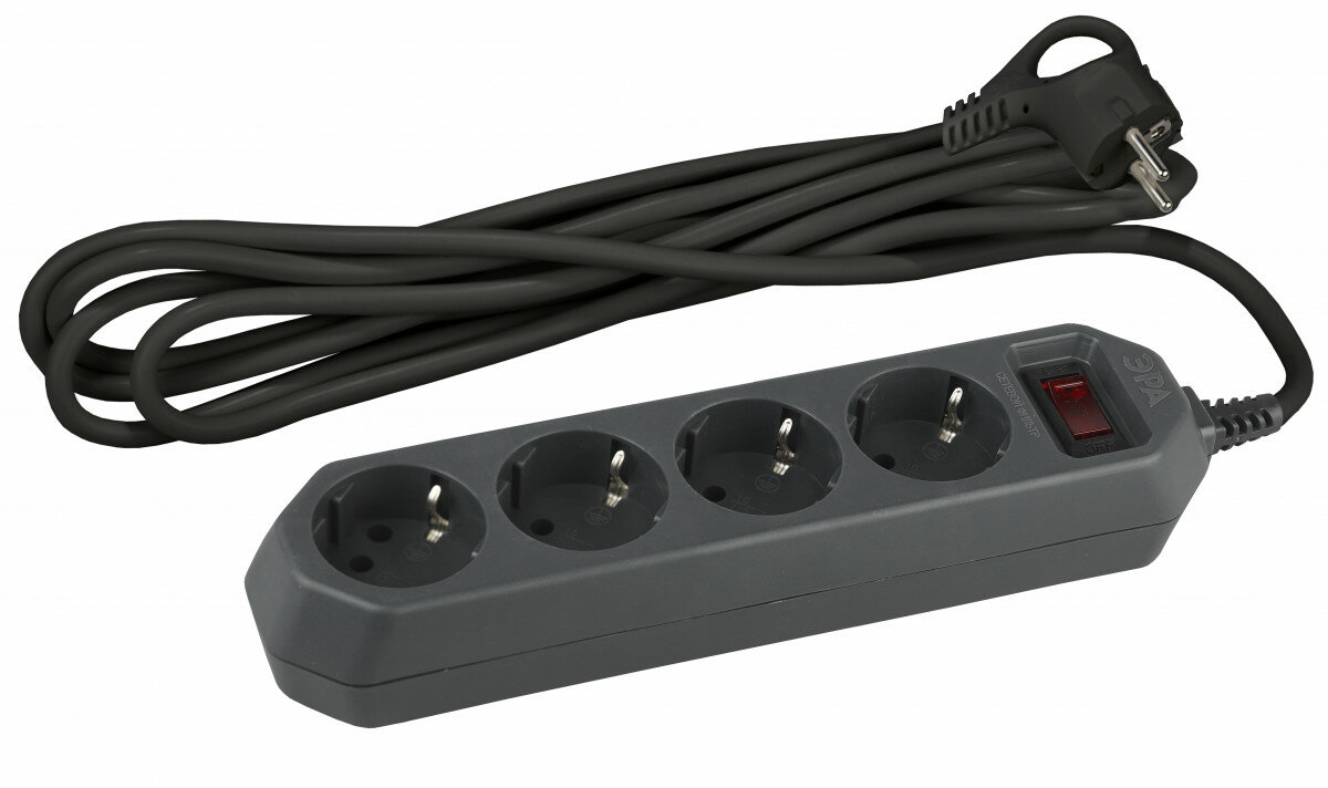 Сетевой фильтр ЭРА 4 гнезда, 1,5 м, ПВС, 10А, черный