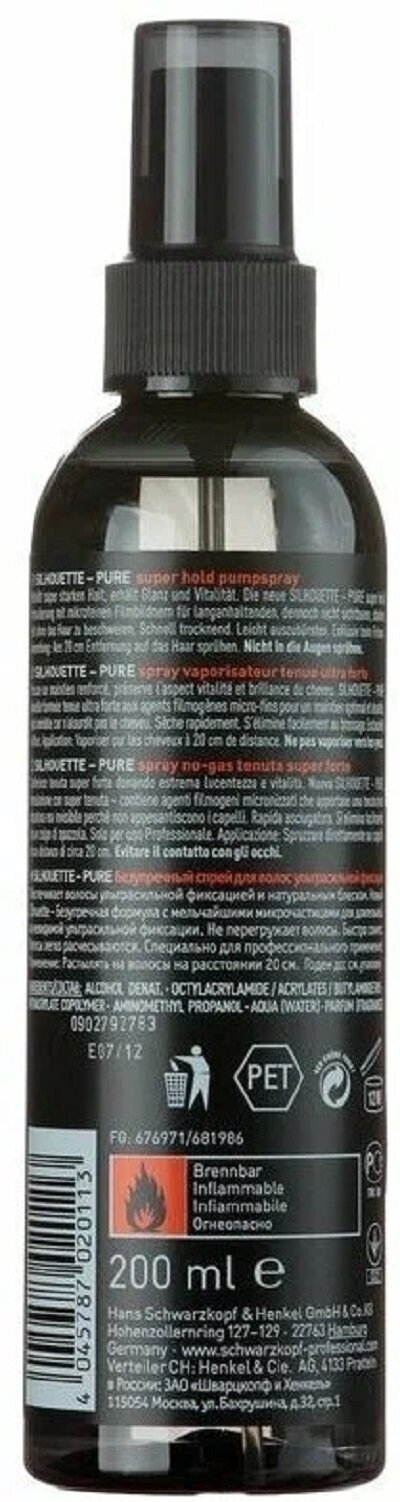 SILHOUETTE Безупречный Спрей д/волос ультрасильн фикс PUMP SPRAY super hold - Черный 200 ml (жидкий