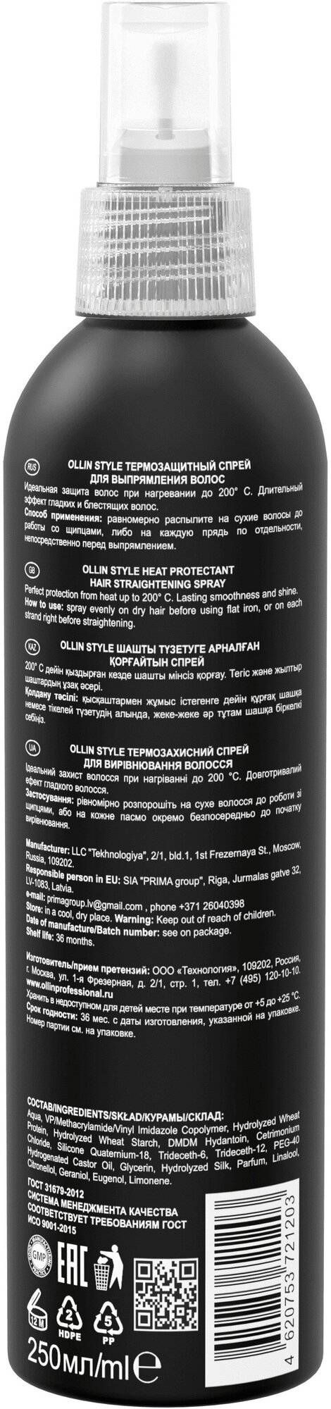 OLLIN Professional Термозащитный спрей для выпрямления волос, 277 г, 250 мл