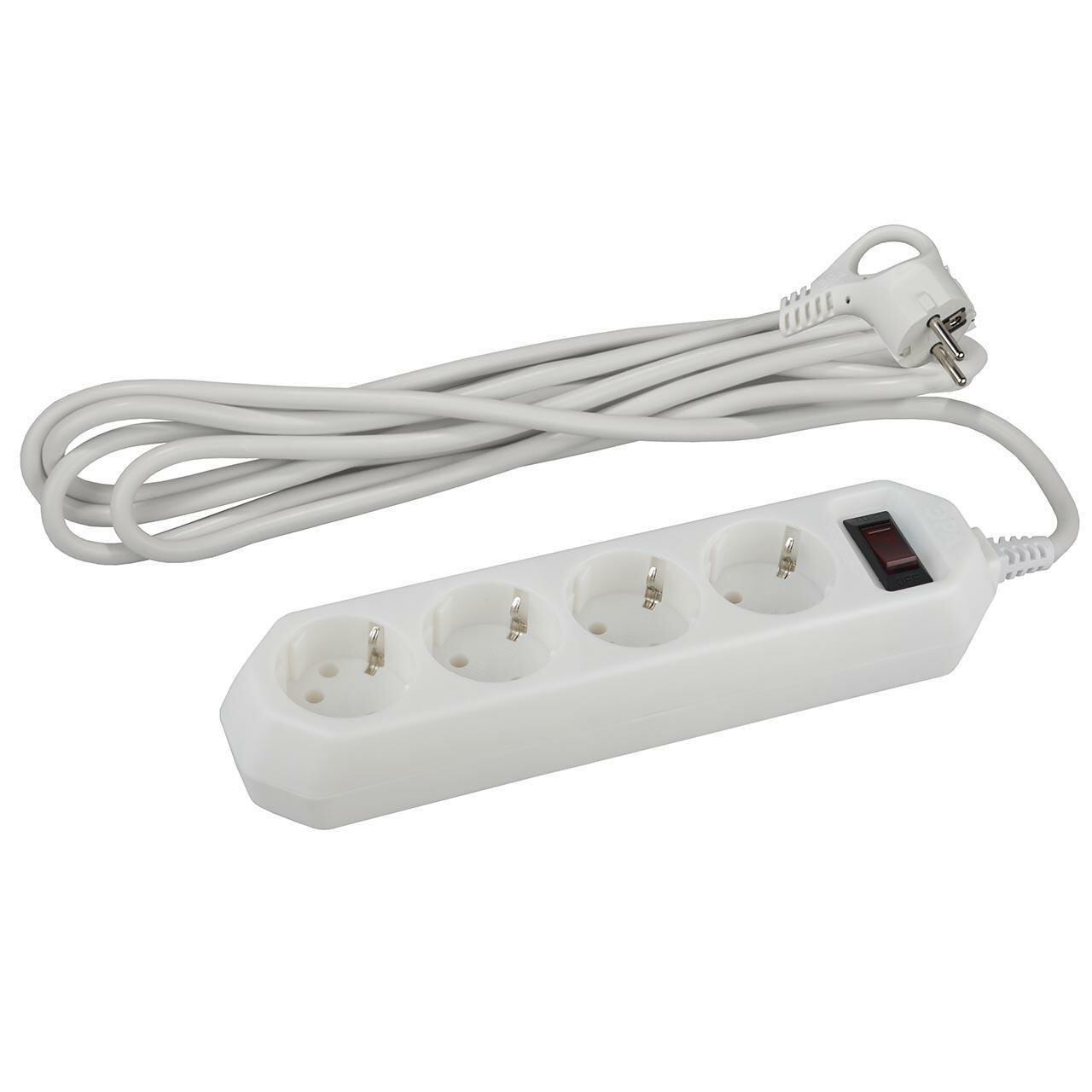 Сетевой фильтр ЭРА 4 гнезда, 1,5 м, ПВС, 10 А, белый
