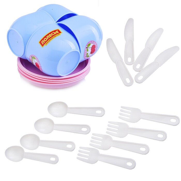 Набор детской посуды Полесье "Минутка" на 4 персоны, 20 элементов, в сетке (80257)