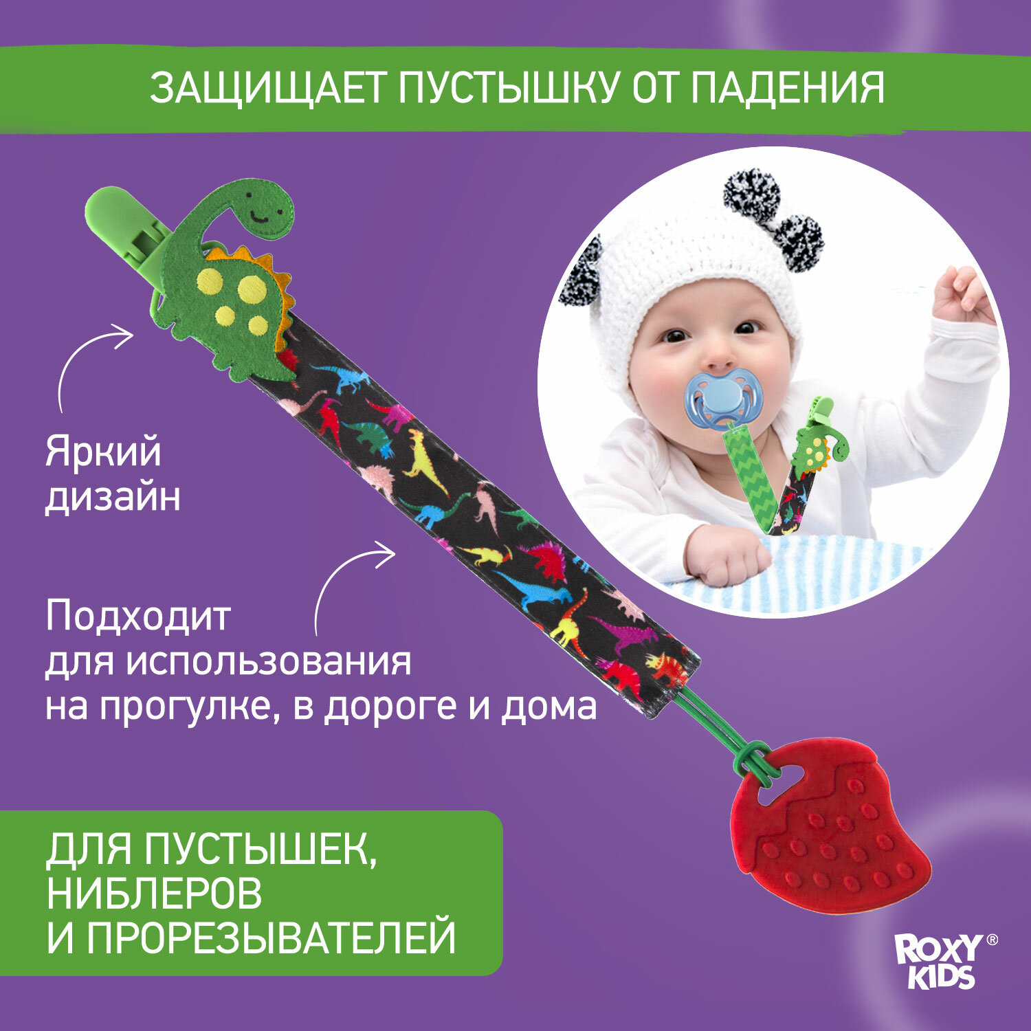 СохранитьДержатель для пустышек с игрушкой DINO от ROXY-KIDS интересное: