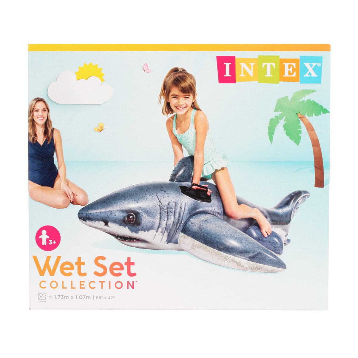 Купить Надувная игрушка для плавания верхом INTEX Акула 173х107 см, с ручками надувной круг, пляжный матрас - наездник, нагрузка до 40 кг, возраст до 14 лет / 1 шт