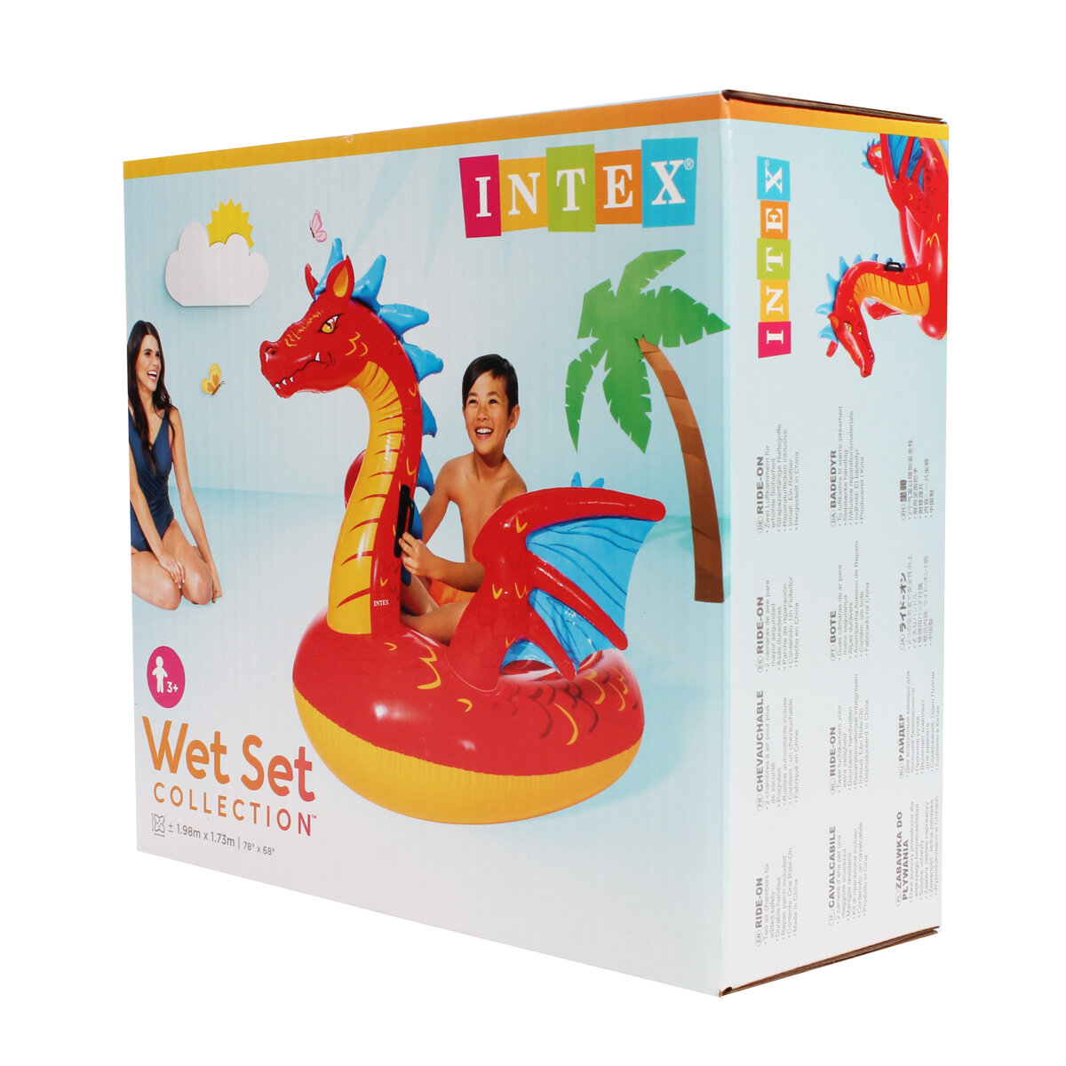 Купить Надувная игрушка для плавания верхом матрас INTEX Дракон 198х172 см, с ручками надувной плот, пляжный матрас - наездник, нагрузка до 40 кг, возраст до 14 лет / 1 шт.