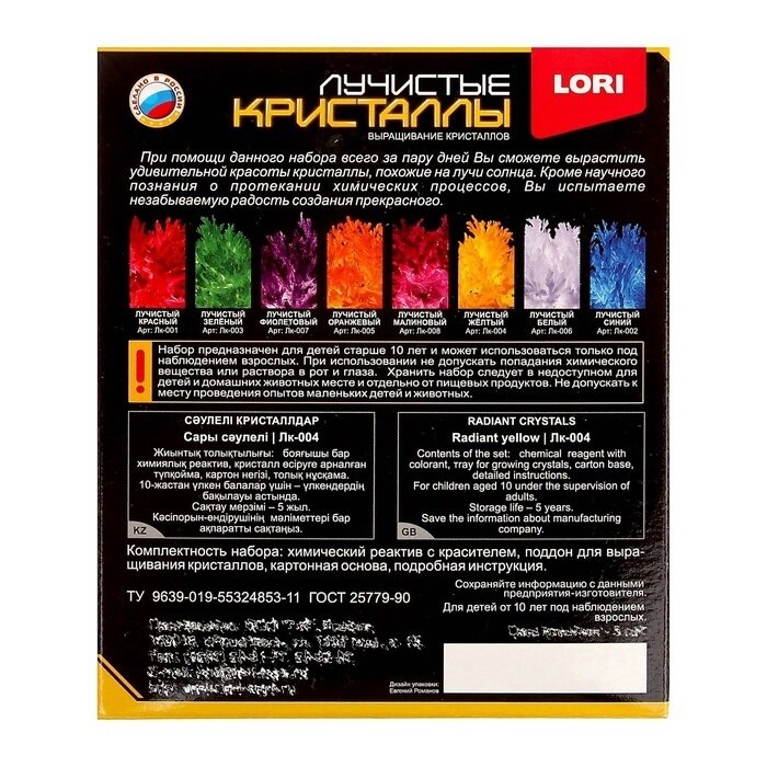 Купить Набор для выращивания кристаллов Lori "Лучистый желтый", картонная коробка Lori 222967