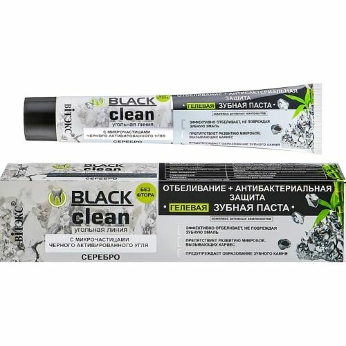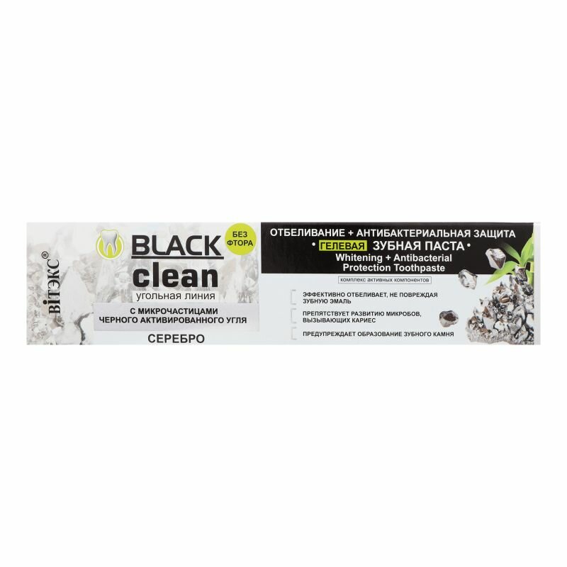 Black Clean Зубная паста Отбеливание + Антибактериальная защита с микрочастицами черного активированного угля и серебром,гелевая 85г