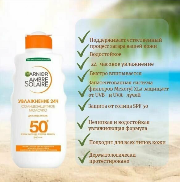 Гарньер амбр солер Солнцезащитное Молочко для лица и тела SPF50+ 200мл