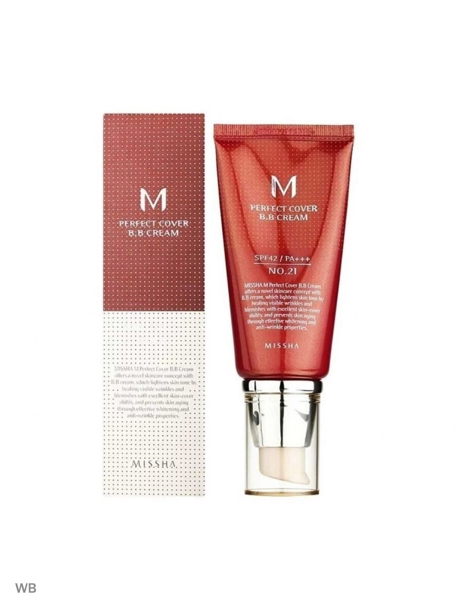 MISSHA тональный bb-крем для лица солнцезащитный #21 (50 мл.) M Perfect Cover BB Cream SPF42 PA+++ / Корейская косметика