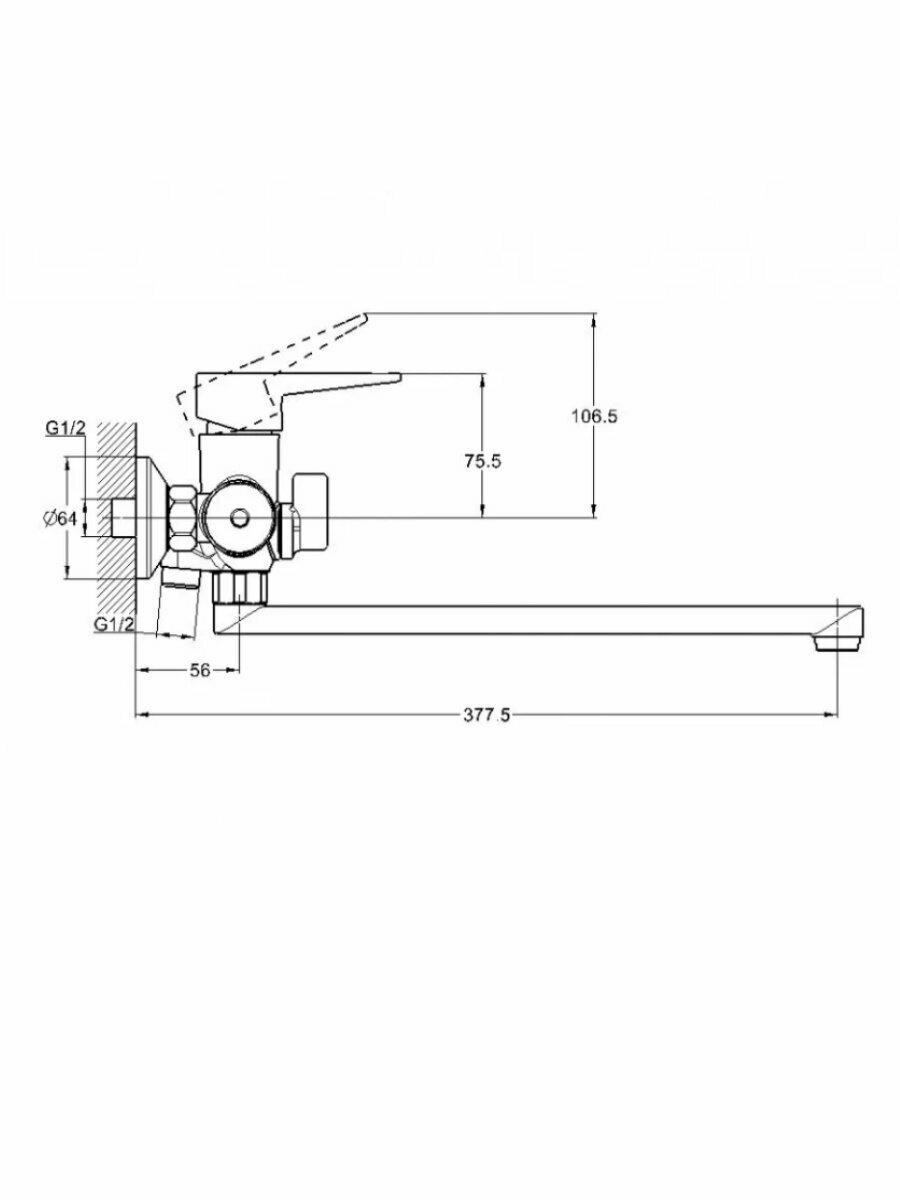 Смеситель д/ванны, 1-руч, к35, дл плоск изл, G-Lauf (Китай), арт NUD7-A045