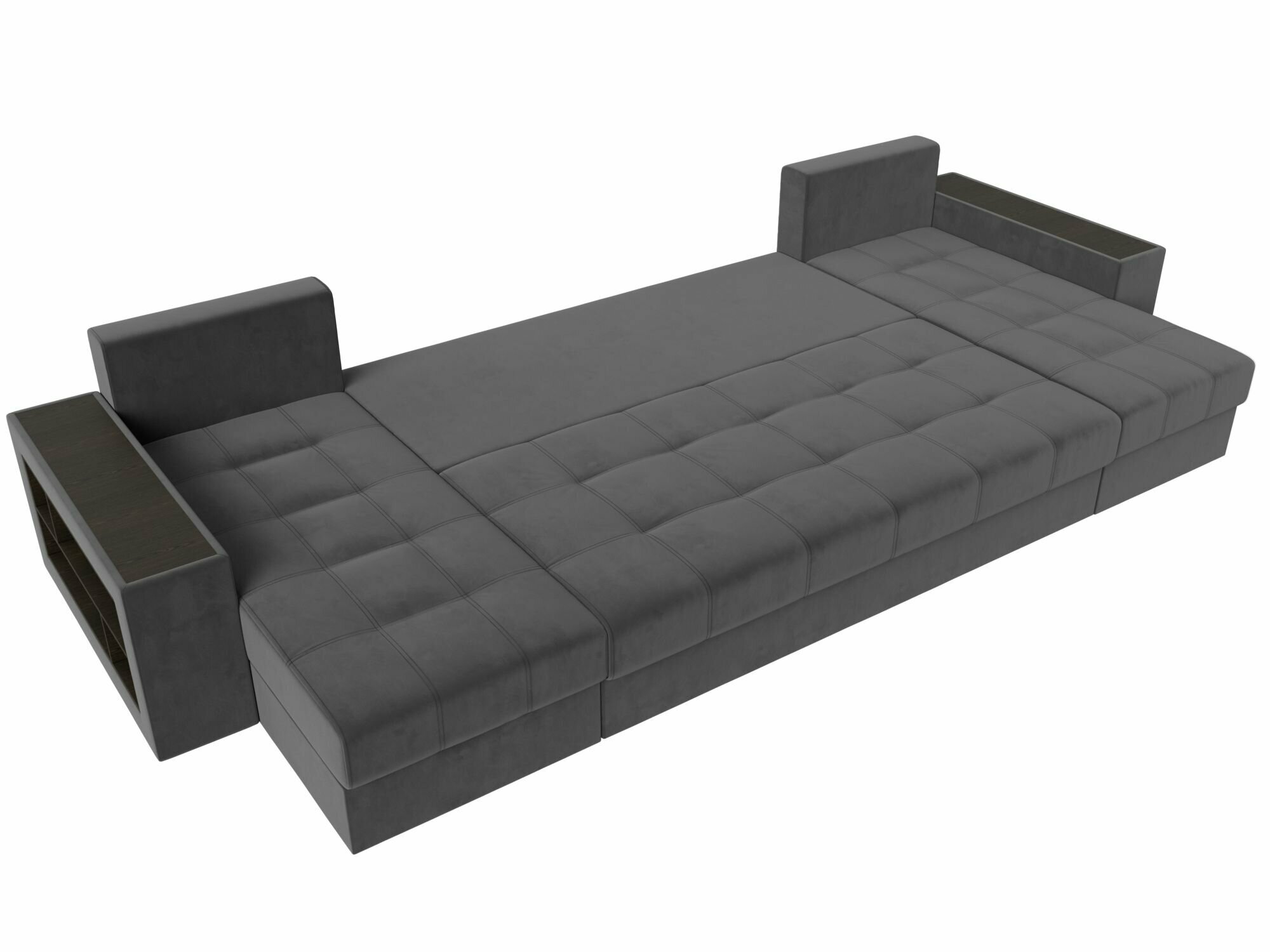 П-образный диван Дубай полки слева, Велюр серый интересное: