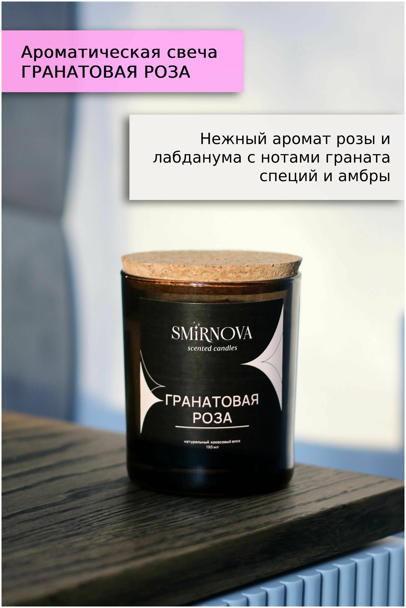 Свеча ароматическая SMIRNOVA "Гранатовая роза" в подарочной упаковке, 190 мл, 40 часов, хлопковый фитиль, кокосовый воск интересное: