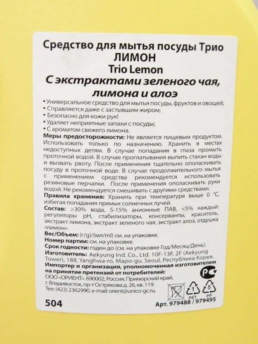 СохранитьTrio Средство для мытья посуды Лимон 1000мл интересное: