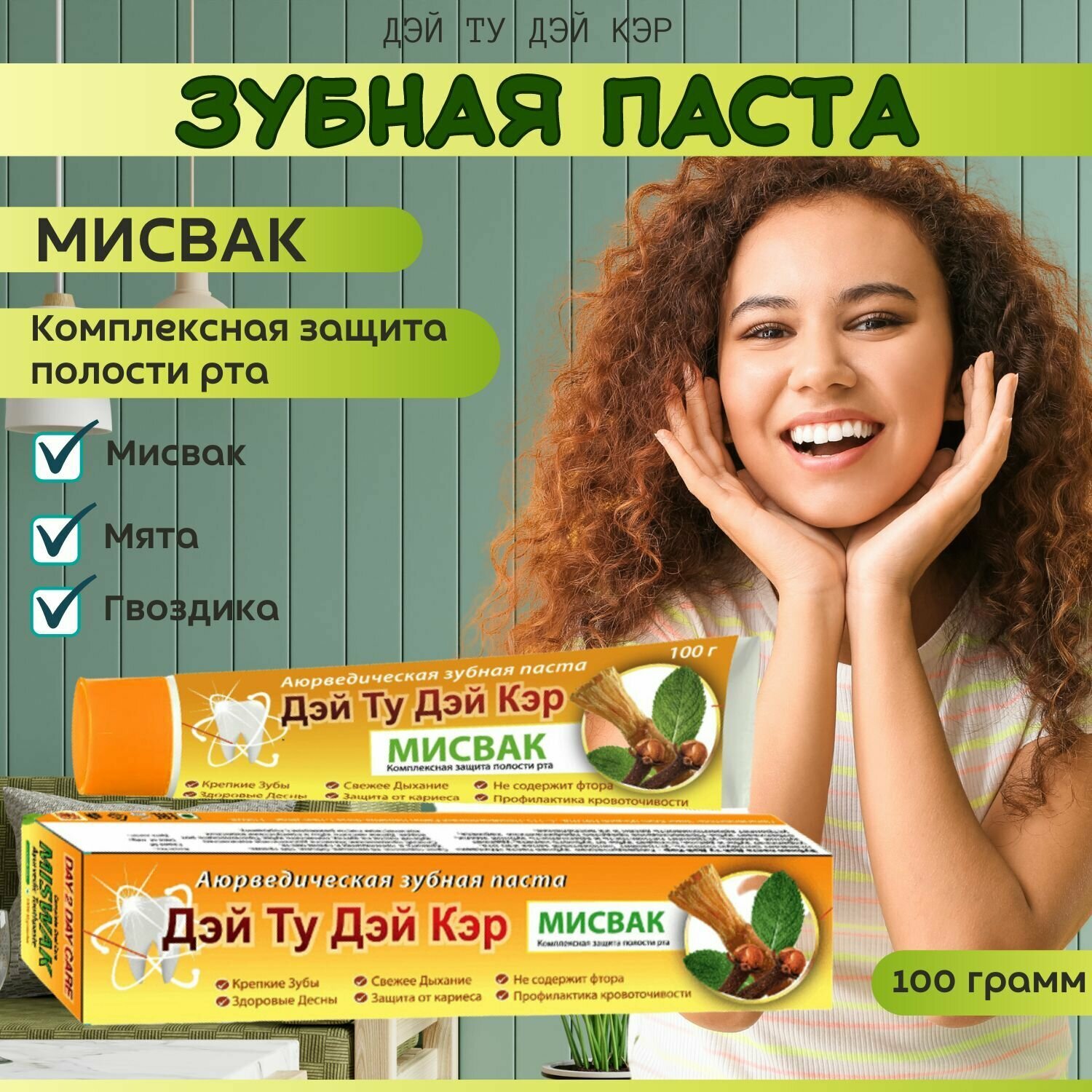 Аюрведическая Зубная паста мисвак, Дэй Ту Дэй Кэр, 100 гр - 2 шт