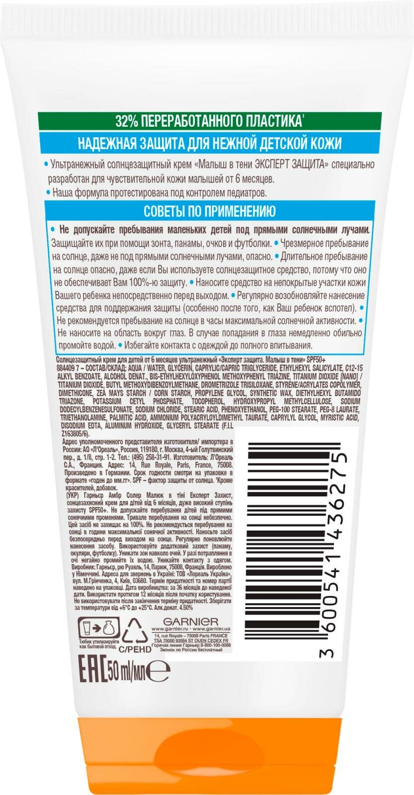 GARNIER Крем для загара детский Ambre Solaire Эксперт Защита Малыш в Тени защитный SPF 50, 50 мл