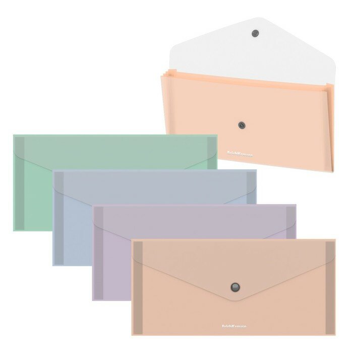 Папка-конверт на кнопке 260 х 132 мм (Travel), 550 мкм, ErichKrause "Matt Pastel Bloom", с расширением, 4 отделения, полупрозрачная, тиснение "песок", микс(4 шт.) интересное:
