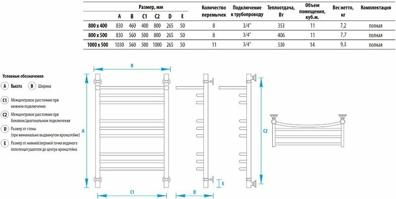 Водяной полотенцесушитель Aquanet Mauro(г2) 800x500