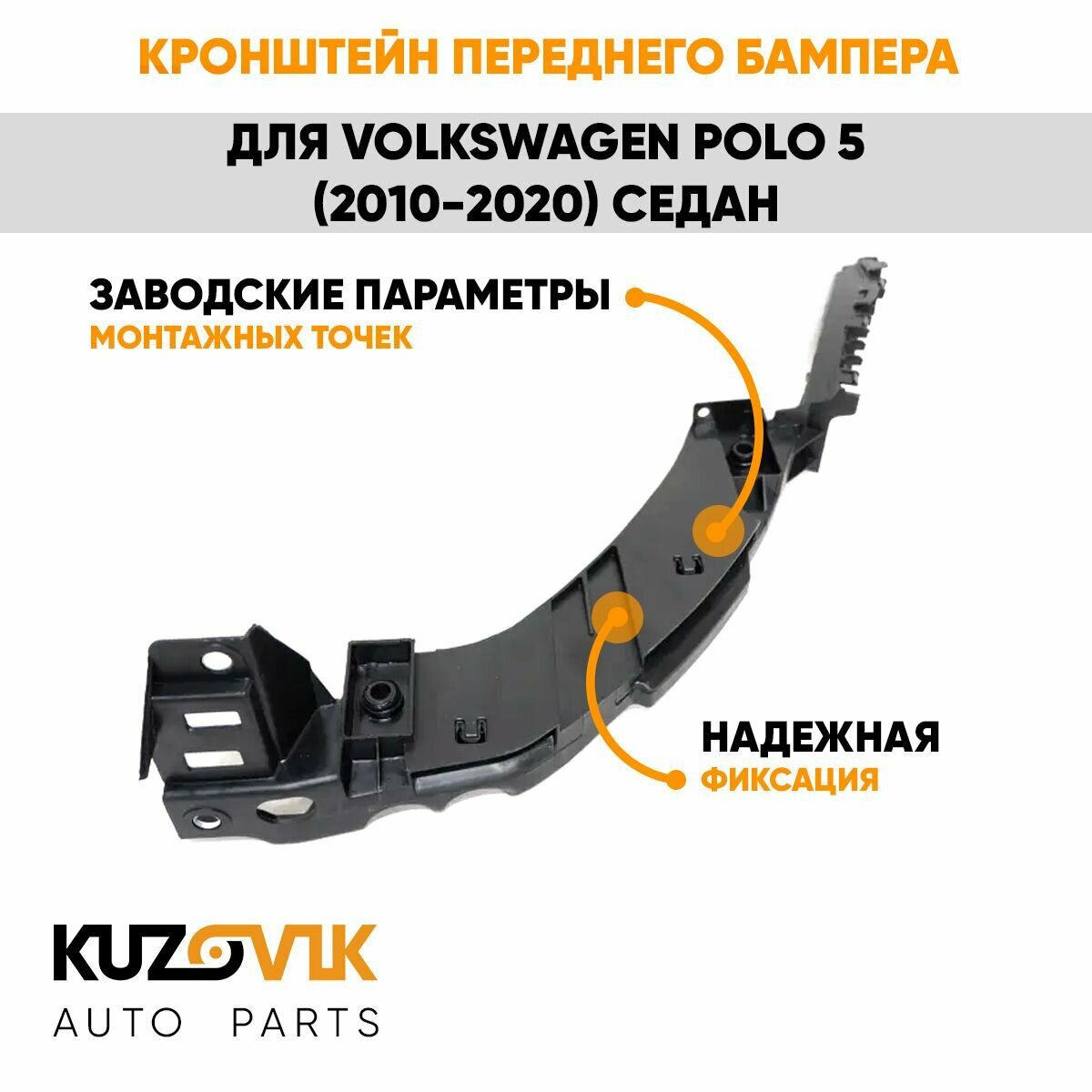 Кронштейн крепление переднего бампера левый Volkswagen Polo Фольксваген Поло 5 (2010-2020) седан под фару интересное: