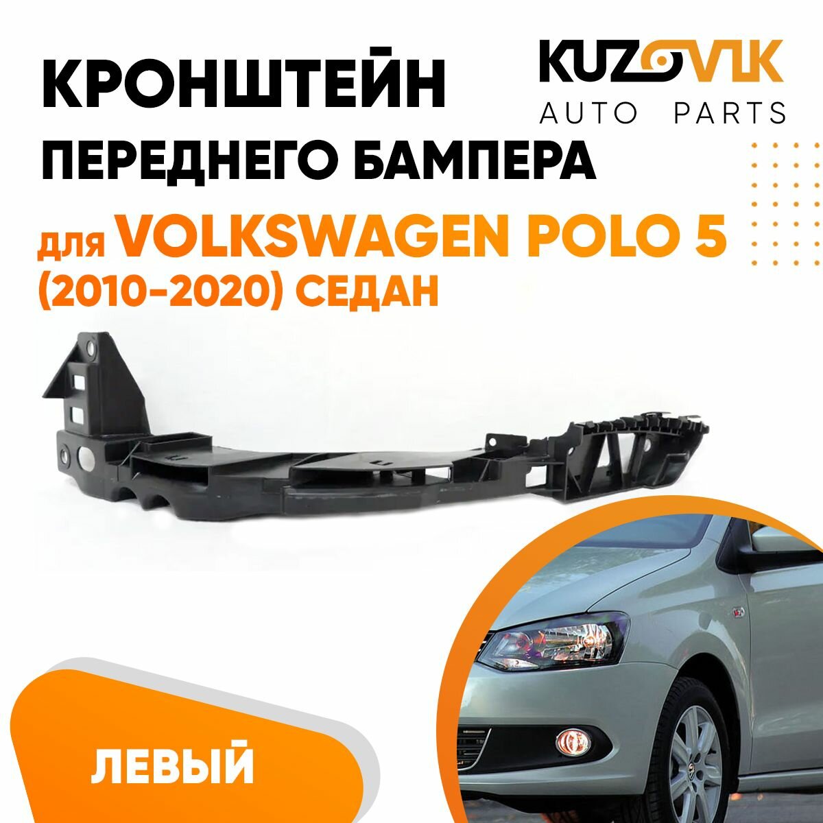 Купить Кронштейн крепление переднего бампера левый Volkswagen Polo Фольксваген Поло 5 (2010-2020) седан под фару