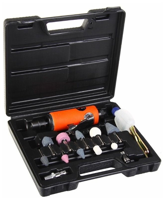 | Комплектация | цанга 6 мм. - 1 шт., цанга 3 мм. - 1 шт., шарошки (хвостовик 3 мм.) – 5шт., шарошки (хвостовик 5 мм.) – 5шт., ключ гаечный - 1 шт., евро адаптер 1/4” - 1 шт. |