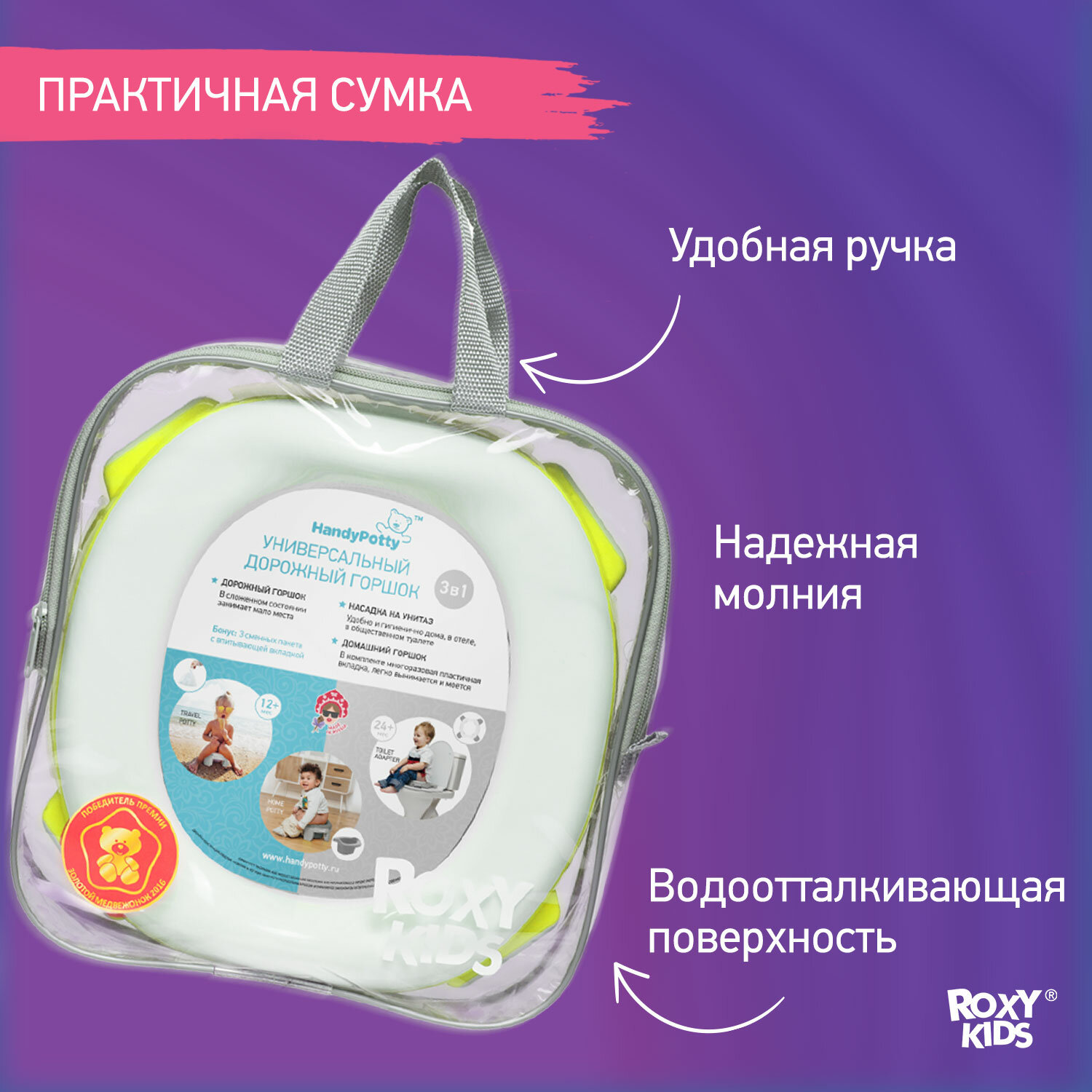 СохранитьДорожный горшок Roxy-kids ROXY KIDS HandyPotty, 3 одноразовых пакета, лайм, HP-250GR интересное: