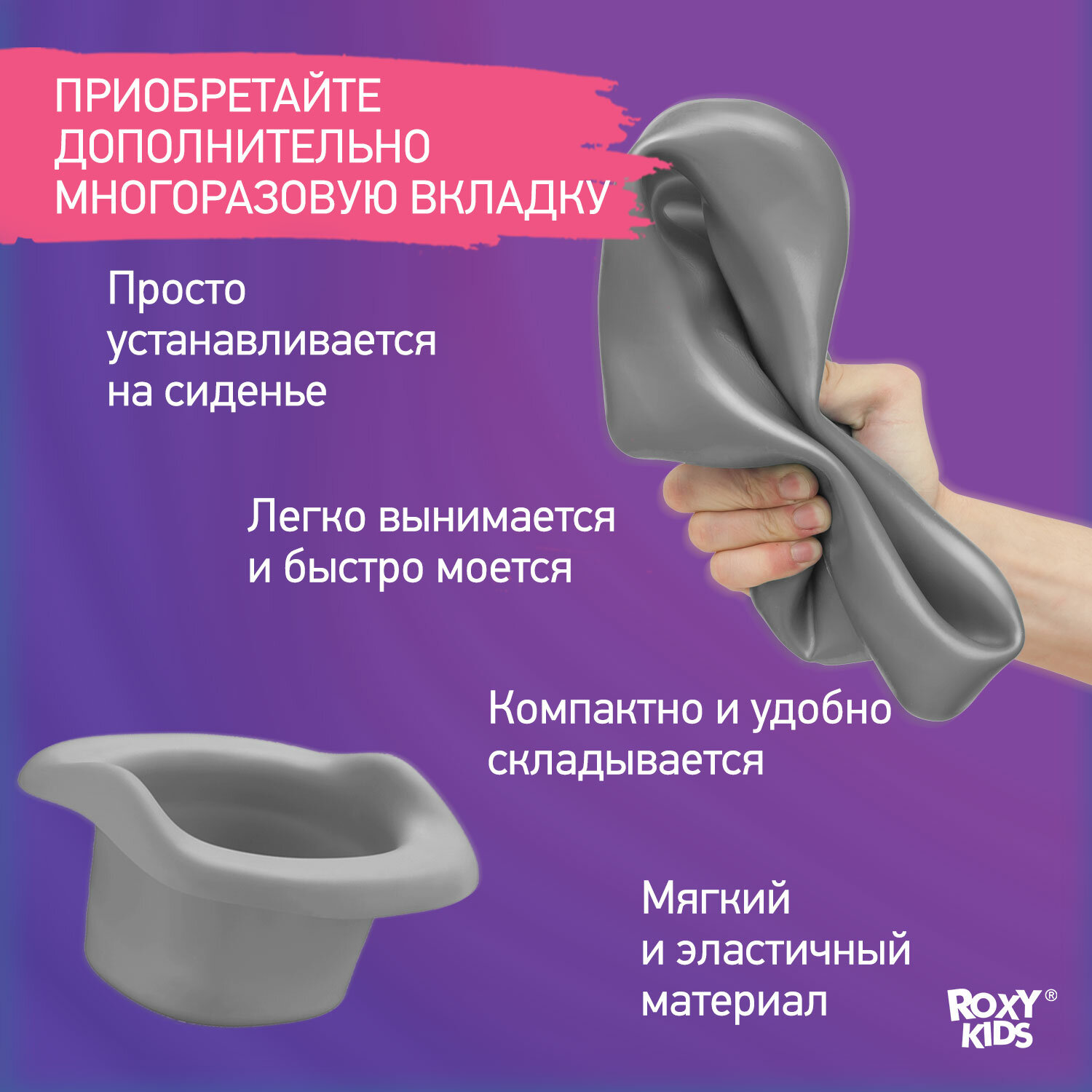 Горшок складной дорожный и насадка на унитаз HandyPotty от ROXY-KIDS с тремя пакетами, цвет лиловый
