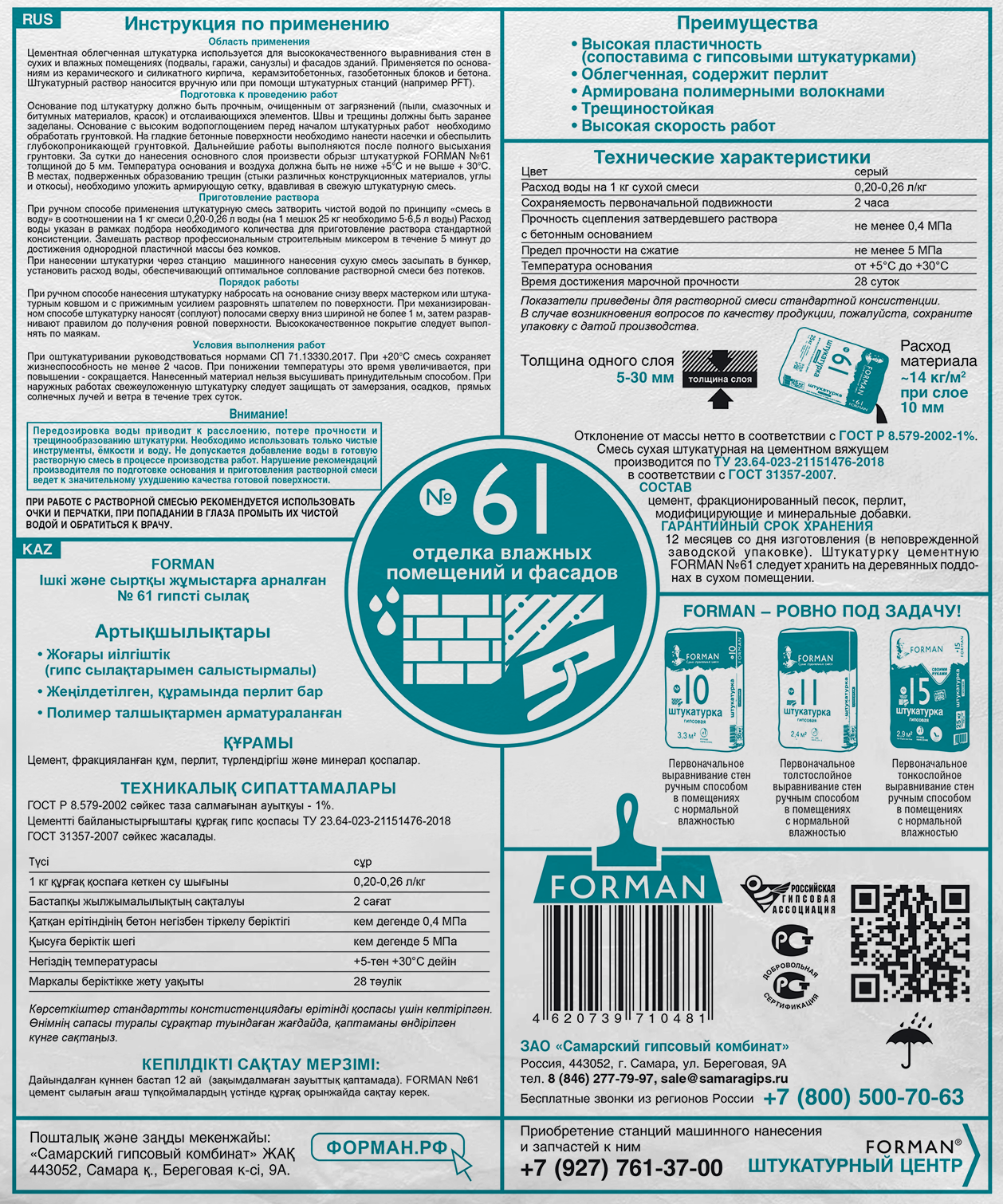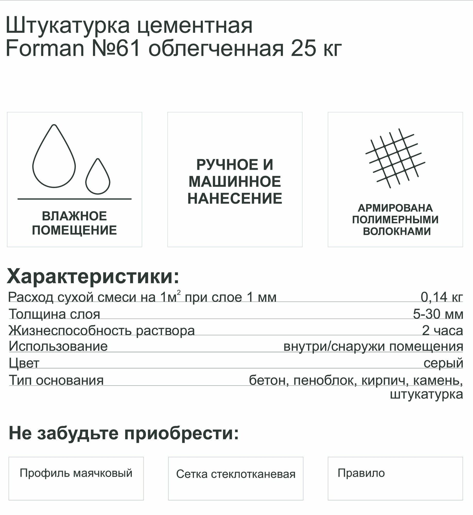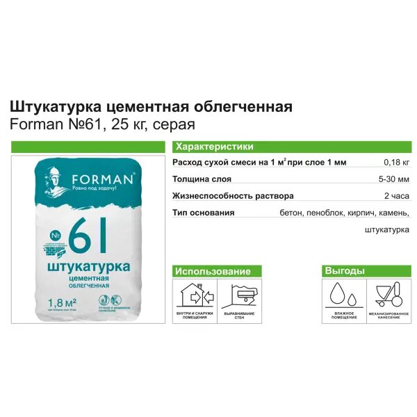 Штукатурка цементная Forman №61 облегченная 25 кг интересное: