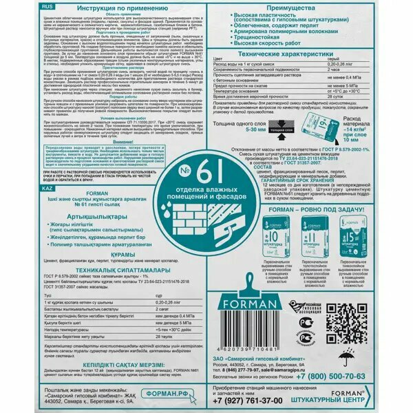 Ниже Вы можете прочитать отзывы на Штукатурка цементная Forman №61 облегченная 25 кг, ознакомится с подробными характеристиками, посмотреть интересные обзоры и фотографии на Штукатурка цементная Forman №61 облегченная 25 кг.