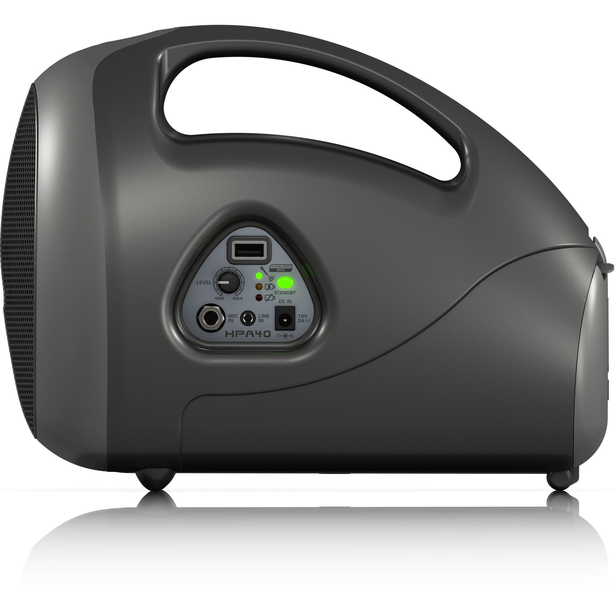 Behringer HPA40 портативная акустическая система, 40 Вт, в комплекте микрофон со шнуром, батарея с зарядкой, ремень.