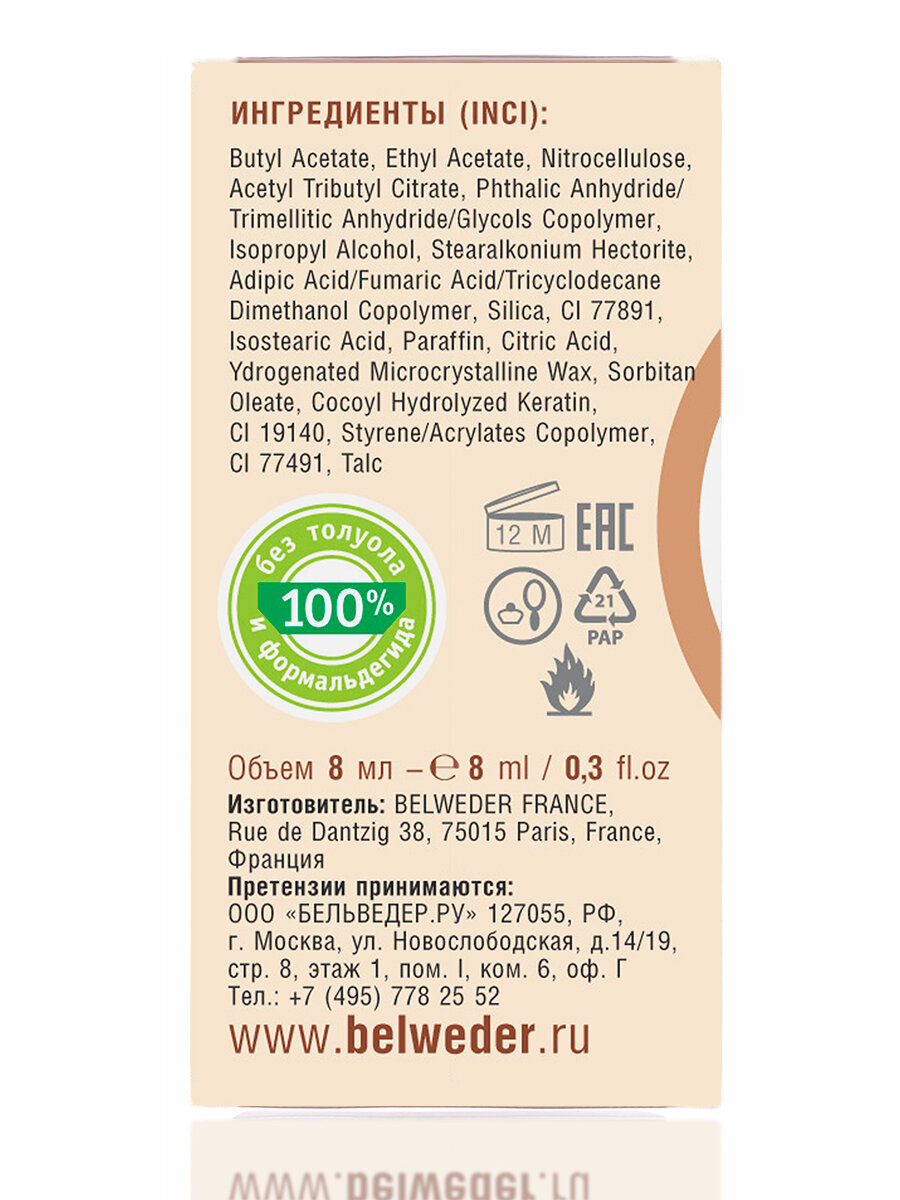 Лак для ногтей Belweder лечебный восстанавливающий от неровностей, расслаивания, нюд, 8 мл