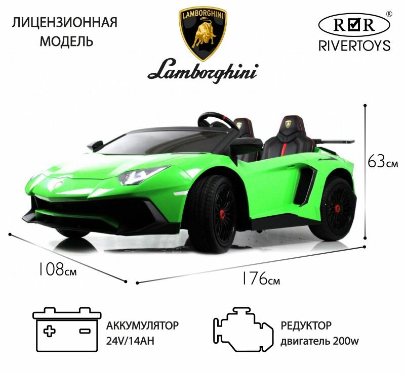 Ниже Вы можете прочитать отзывы на Rivertoys Детский электромобиль Lamborghini Aventador SV (M777MM) зеленый, ознакомится с подробными характеристиками, посмотреть интересные обзоры и фотографии на Rivertoys Детский электромобиль Lamborghini Aventador SV (M777MM) зеленый.