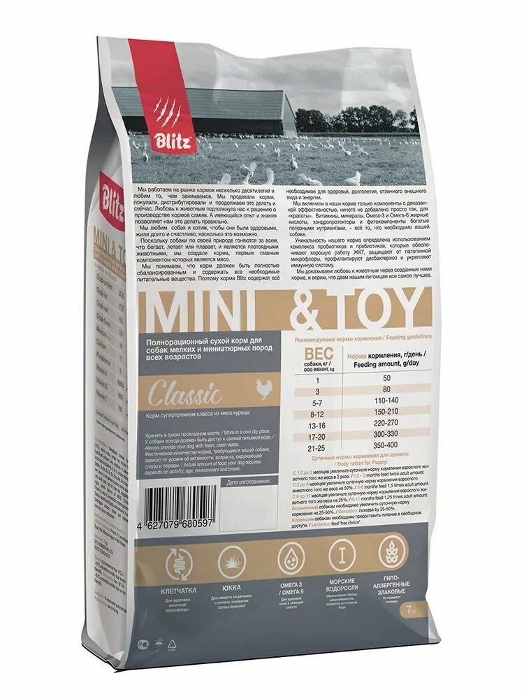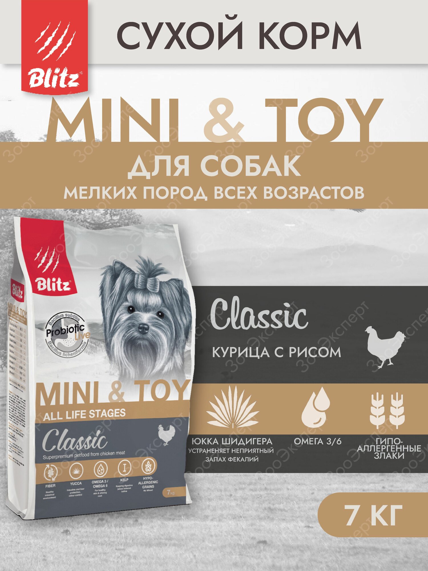 Корм Blitz Classic Mini & Toy для мелких и миниатюрных пород собак (до 10 кг), с курицей, 7 кг