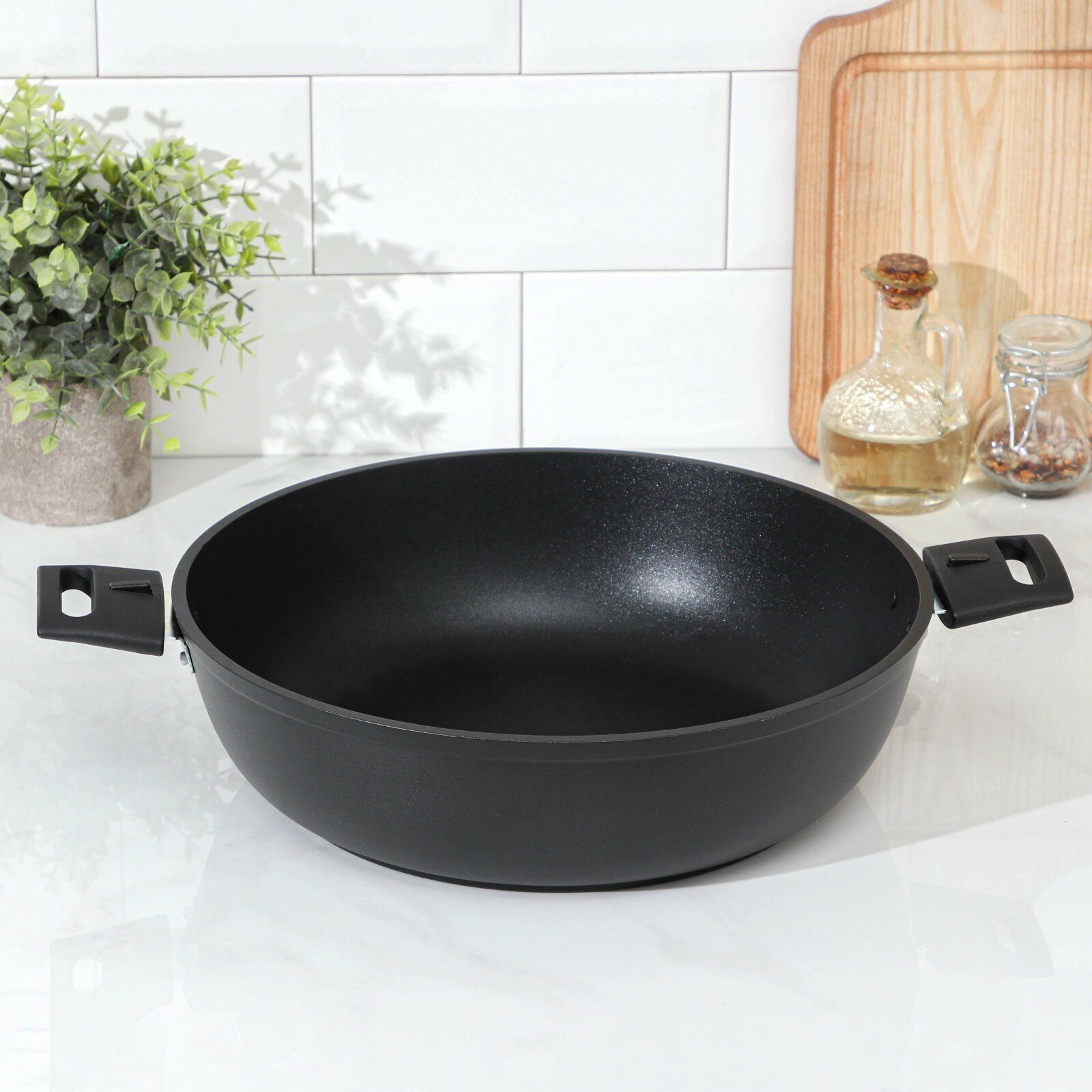 Сковорода «Традиция», d=30 см, h=8,5 см, съёмные ручки, антипригарное покрытие, цвет чёрный интересное: