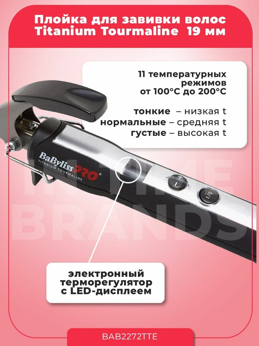 Плойка BaByliss Pro Titanium Tourmaline, c терморегулятором и цифр. диспл., 19мм
