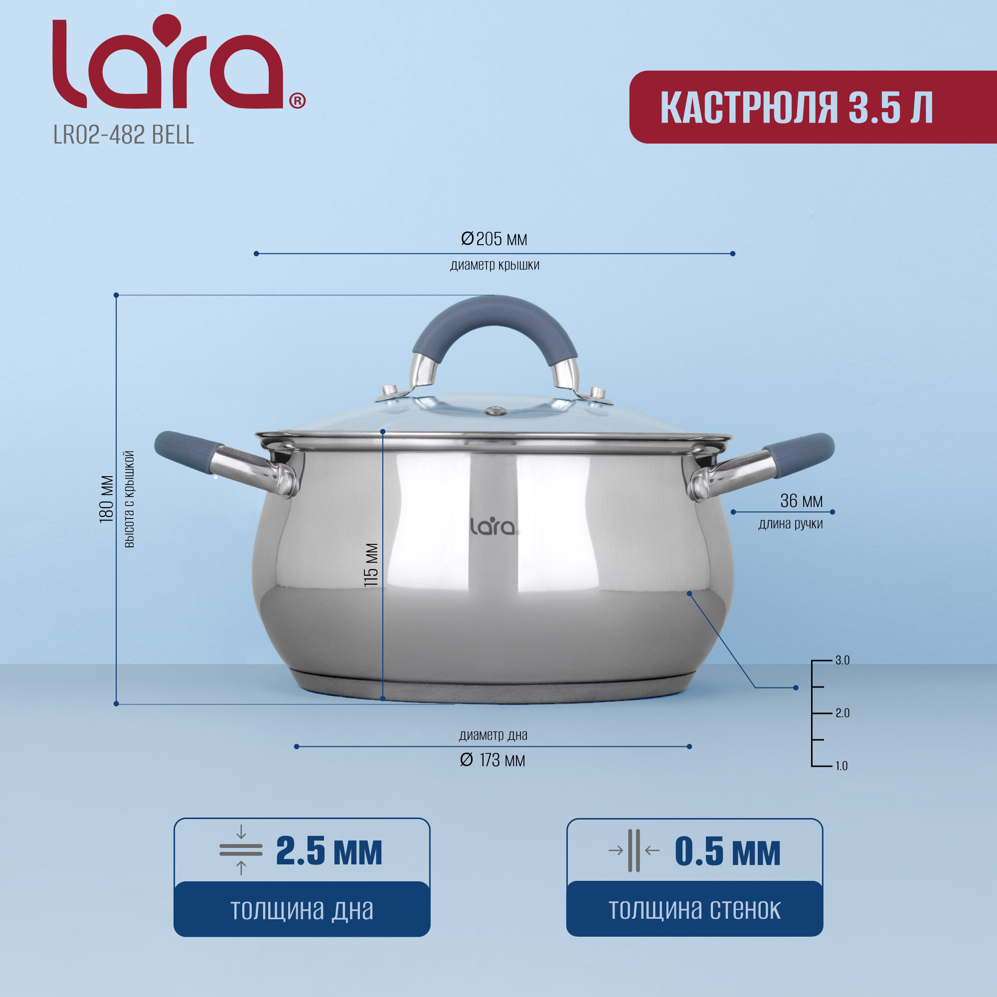 Кастрюля Lara Bell, с крышкой, нержавеющая сталь, 3,5 л