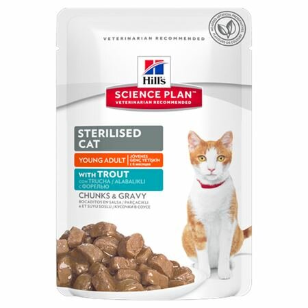 Влажный корм Hill's Science Plan для молодых стерилизованных кошек и кастрированных котов, пауч с форелью в соусе, 85 г-12 шт.