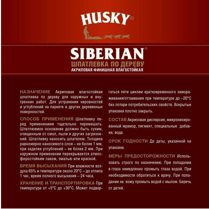 Шпатлевка по дереву /береза/ (0,4кг) HUSKY SIBERIAN