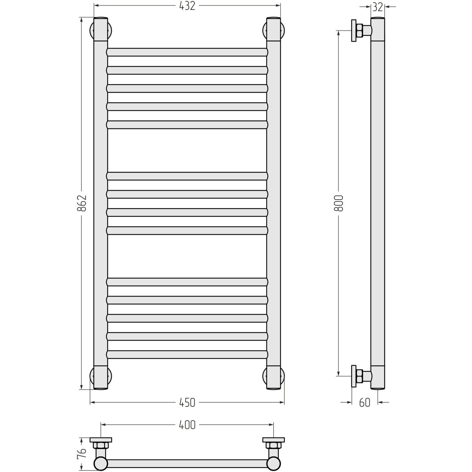 Водяной полотенцесушитель Сунержа Богема+ (прямая) 800x400 арт. 00-0220-8040