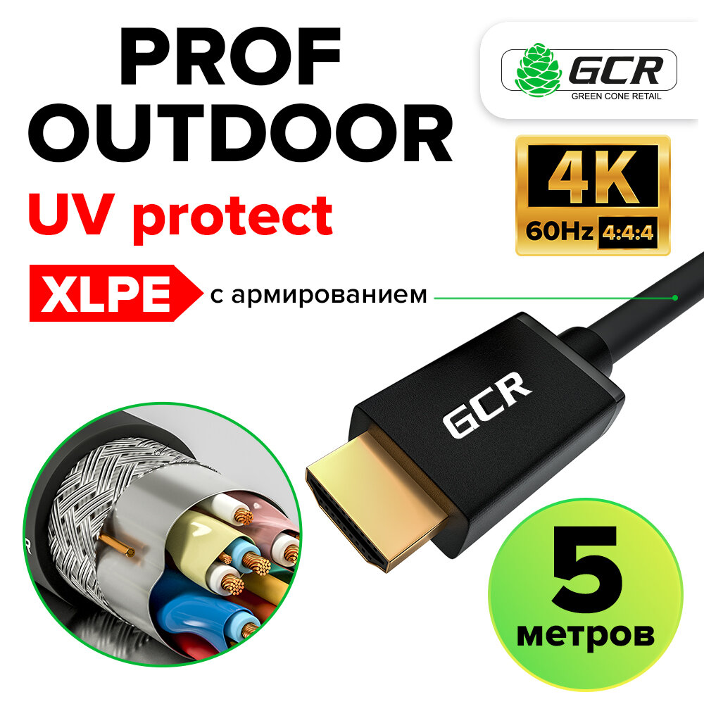 GCR Кабель синхронизации 7.0m HDMI 2.0, XLPE, Outdoor, Ultra HD, 4K 60Hz, 18.0 Гбит/с, HDR 4:4:4, 3D, черный, 2 Х э