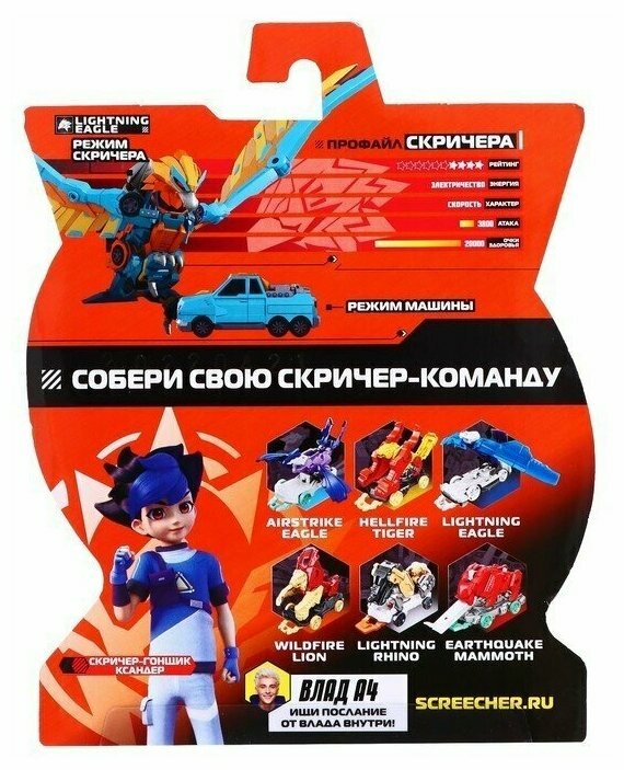 Дикие Скричеры / Влад А4 Машинка - трансформер Лайтнинг Игл L720 Screechers Wild