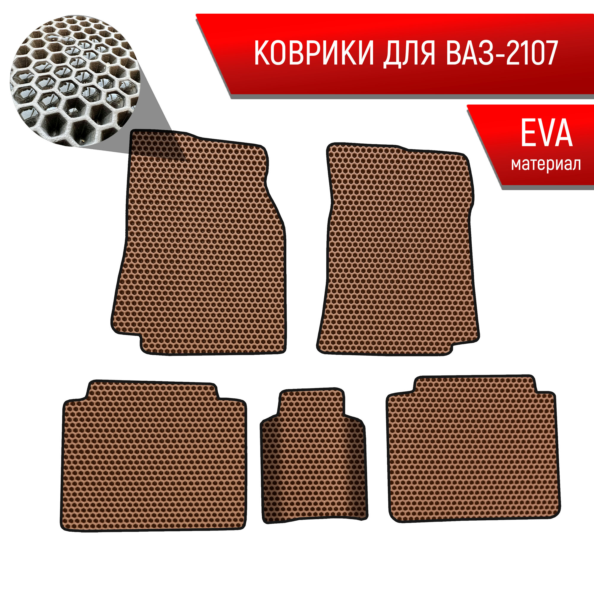Коврики ЭВА сота для авто Vaz 2107 / Ваз 2107 1982-2012 Г.В. Коричневый с Чёрным кантом