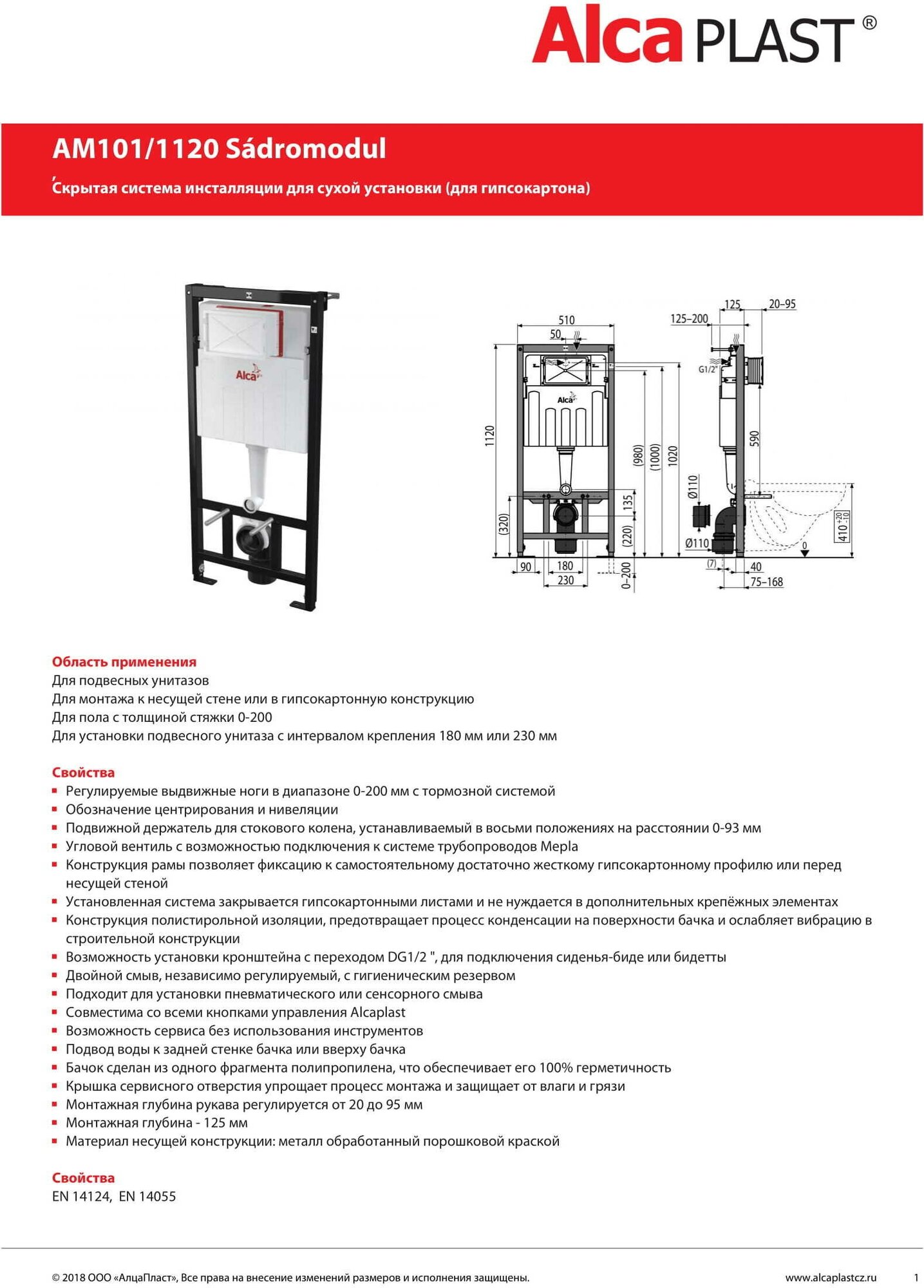 Alcaplast Sádromodul AM101/1120 Система инсталляции для унитаза (высота 1.12 м)