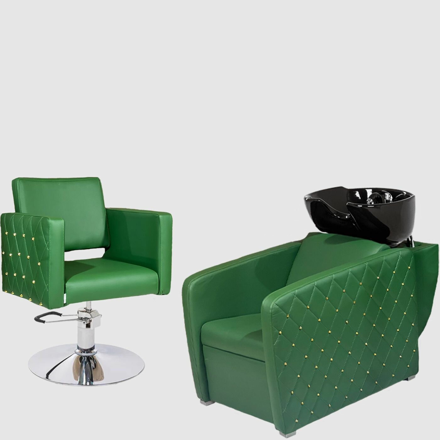 Парикмахерский комплект "Генри", Зеленый, 1 кресло гидравлика диск, 1 мойка глубокая черная раковина интересное: