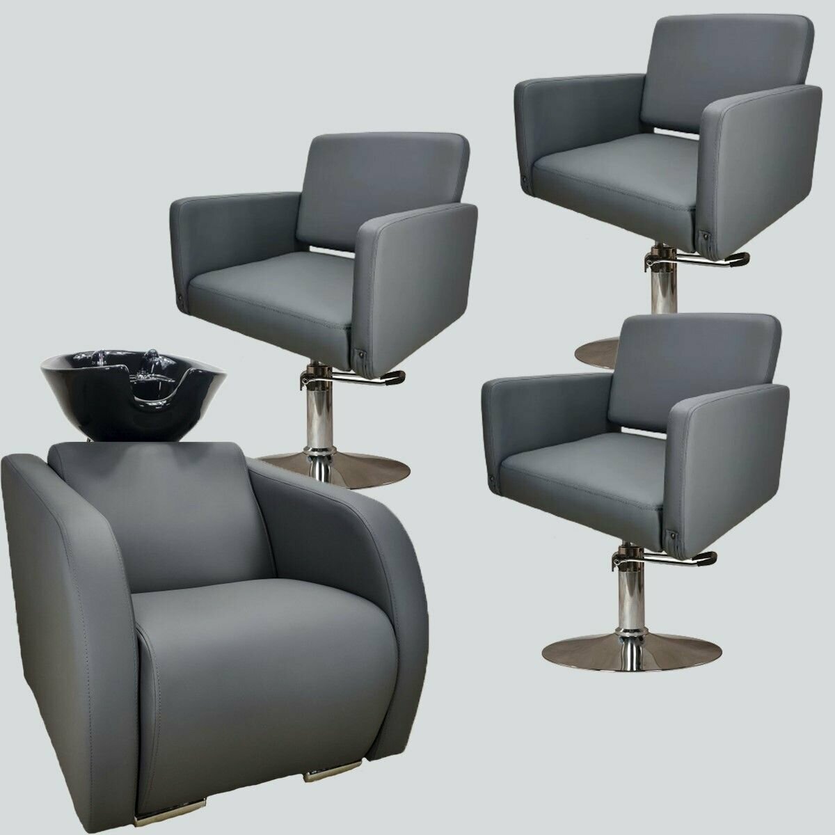 Парикмахерский комплект "Элегант", Серый, 3 кресла гидравлика диск, 1 мойка глубокая черная раковина интересное:
